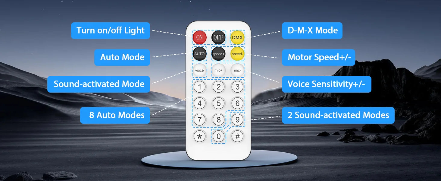 Versatile Control Options: Operate via DMX512, auto mode, sound activation, master-slave sync, or remote control for easy use at any skill level.