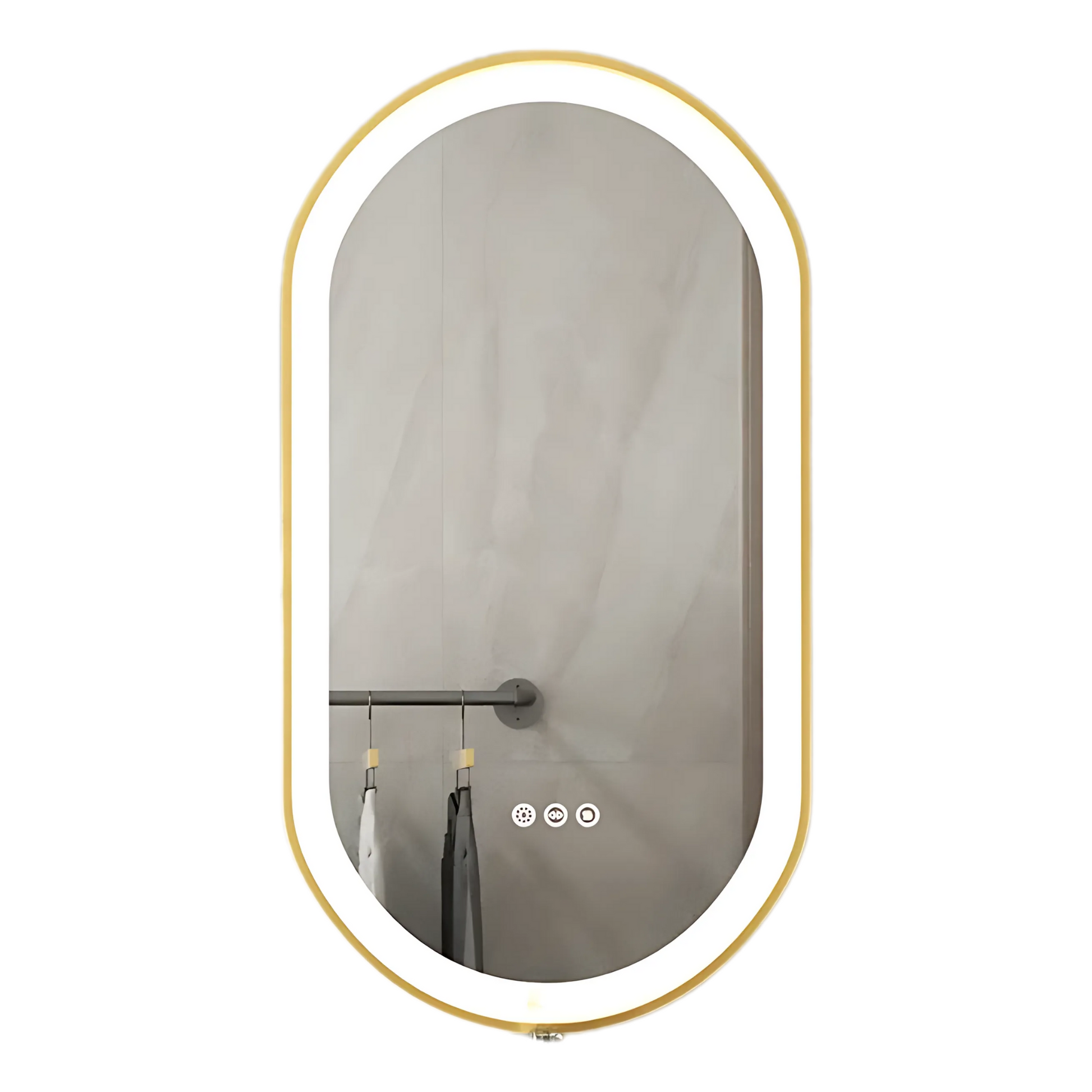 100x50cm Gold Frame Oval Mirror with LED & Demister