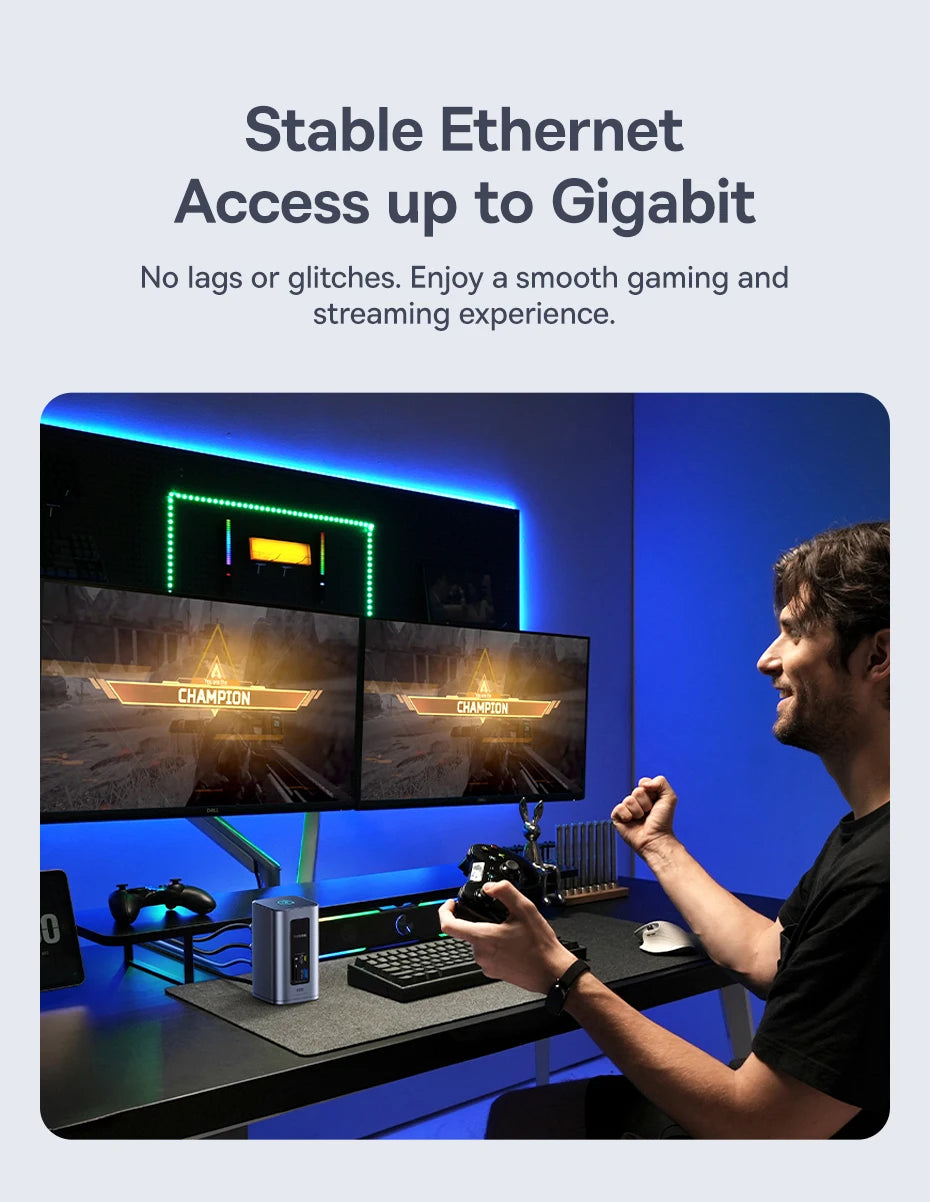 Gigabit Ethernet port for stable, high-speed internet access