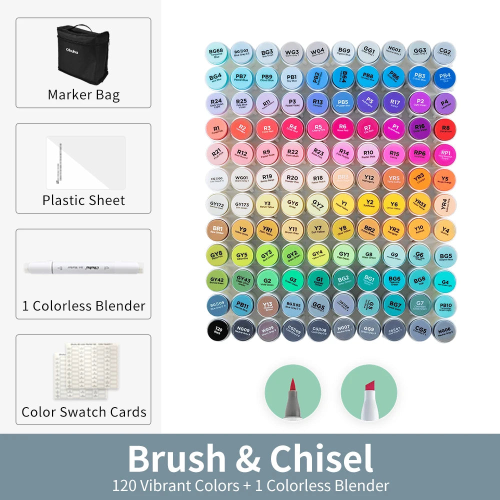 Elevate your artwork with this 120-color dual-tip marker set. Perfect for sketching, coloring, and manga, it features vibrant alcohol-based ink, smooth blending, and refillable markers to fuel your creativity for years.