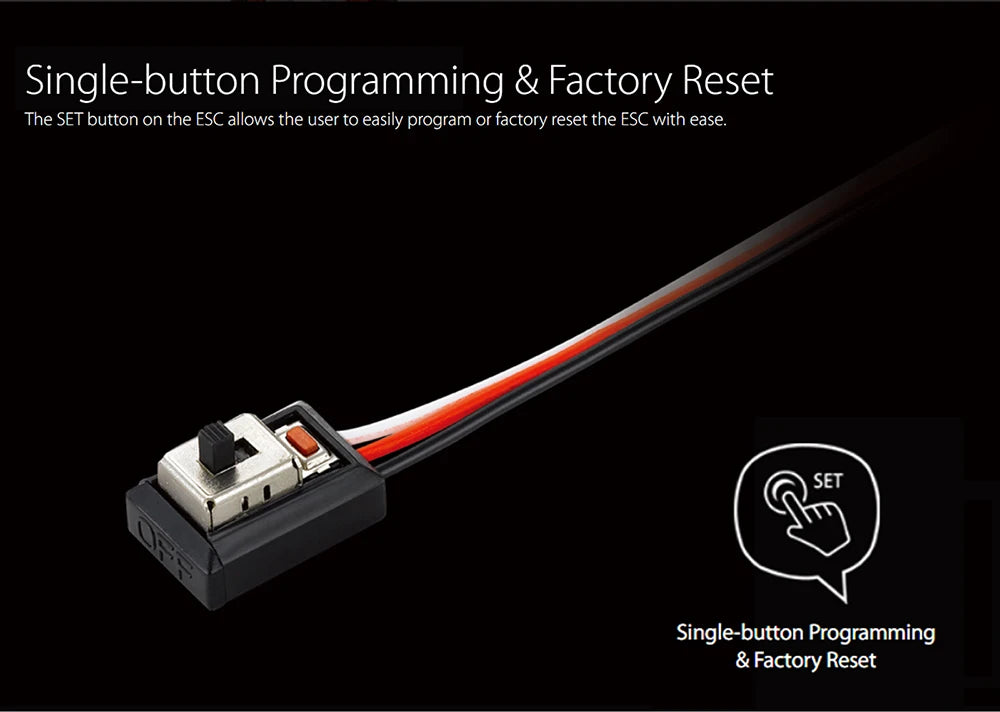 120A ESC with multiple programming options for drag brake, punch, and timing