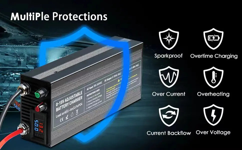 Output Voltage: 0–15V adjustable (14.6V recommended for 12V Lifepo4)