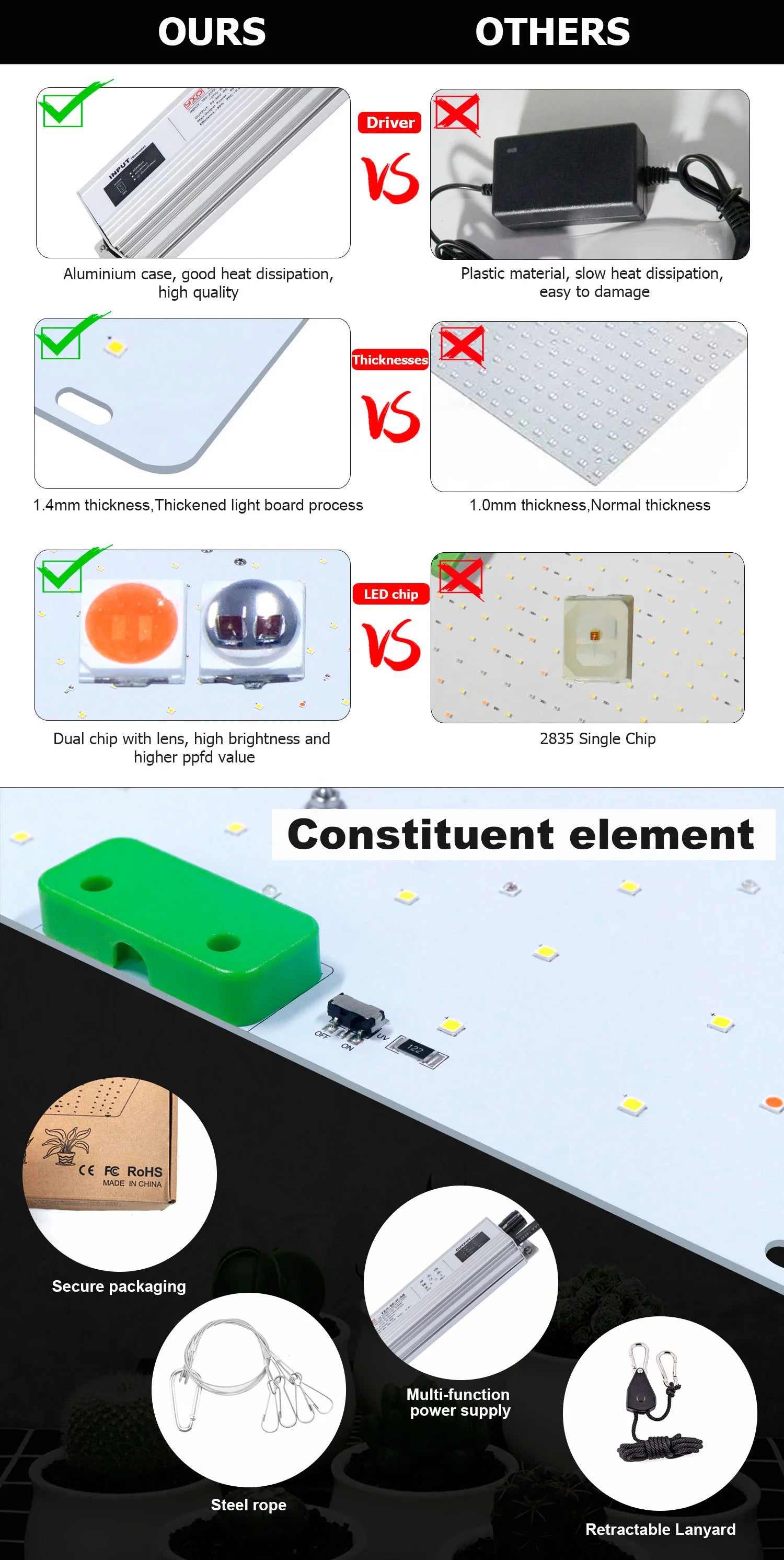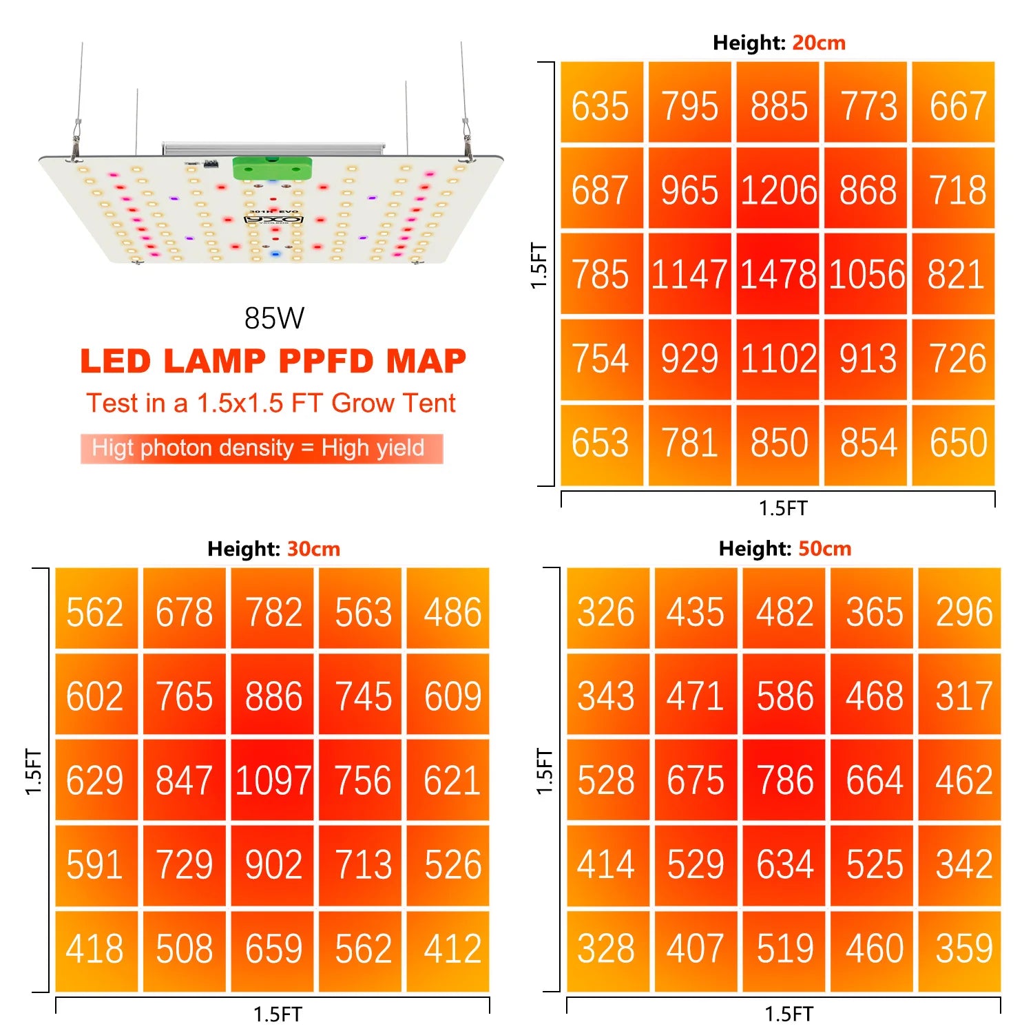Full spectrum lighting from 380nm–780nm for complete plant care