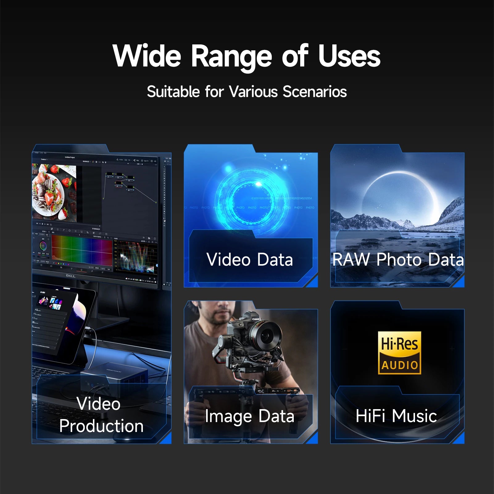 Dual Port Design – Type-C and USB-A interfaces enable cross-device compatibility for laptops, desktops, phones, and tablets.