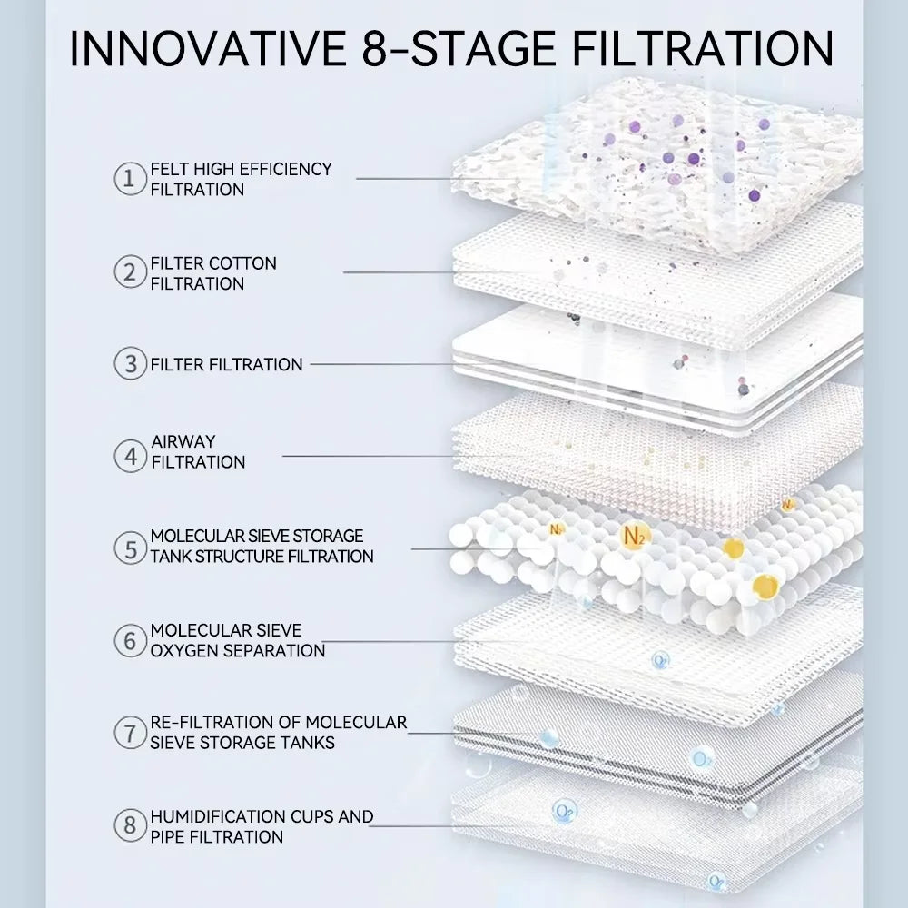 Support your daily breathing needs with this sleek, high-performance 220V oxygen concentrator. Designed with an intuitive touch screen, adjustable flow settings, and quiet operation, it's perfect for both home wellness and elderly care.