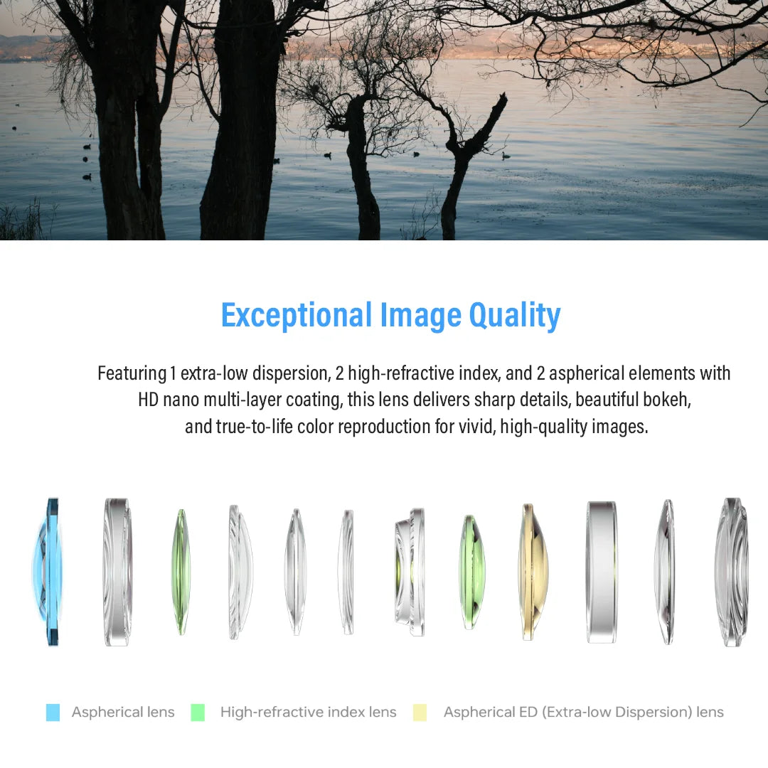 Premium Optics – ED glass and nano-coating reduce flare for crisp, vibrant images.