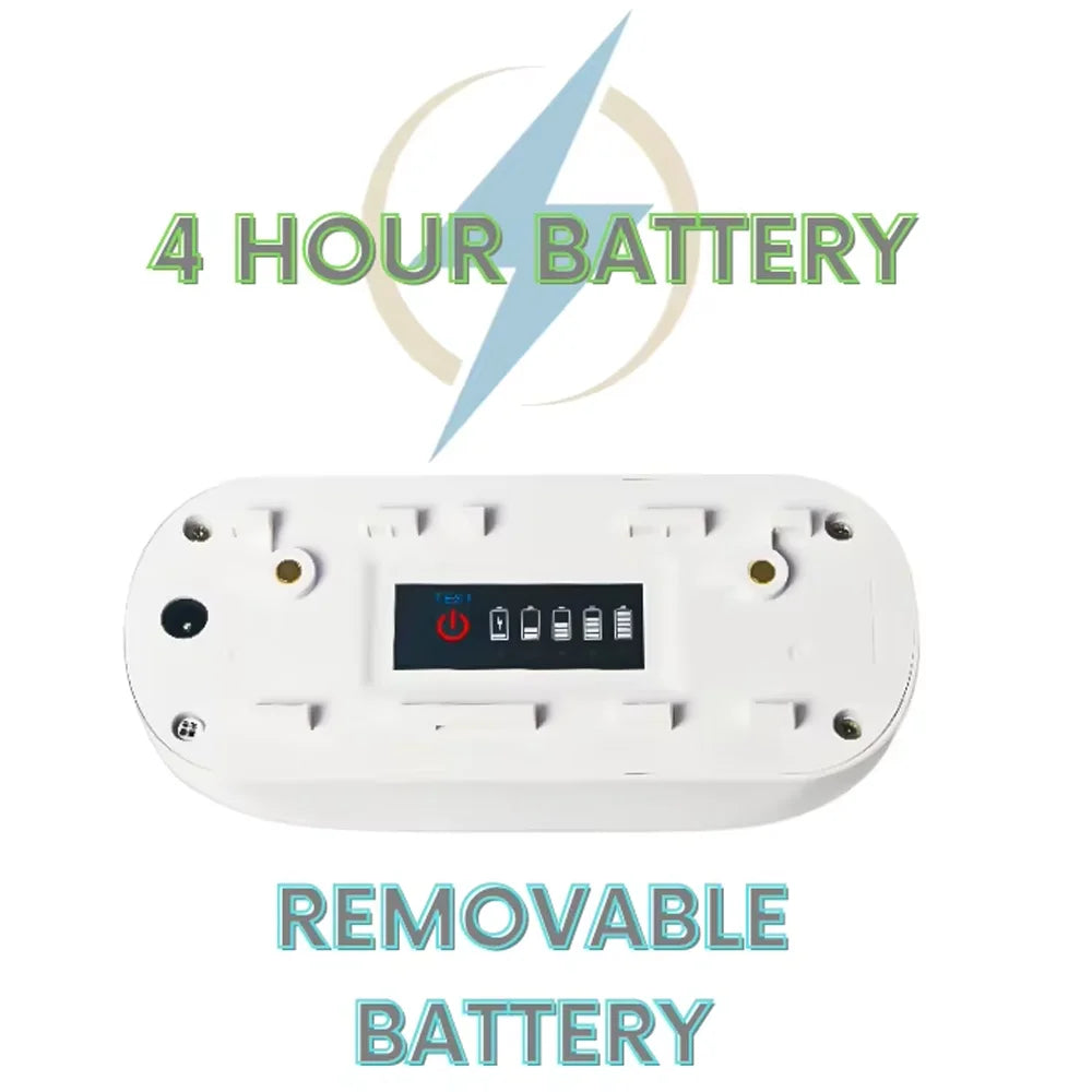Detachable Battery: Runs up to 4 hours per charge, with optional spare batteries available