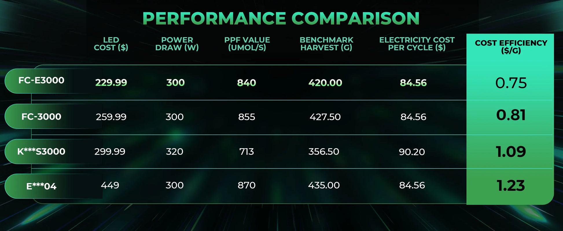 High-Efficiency Output – 300W draw with up to 2.8μmol/J PPE for excellent growth and energy savings