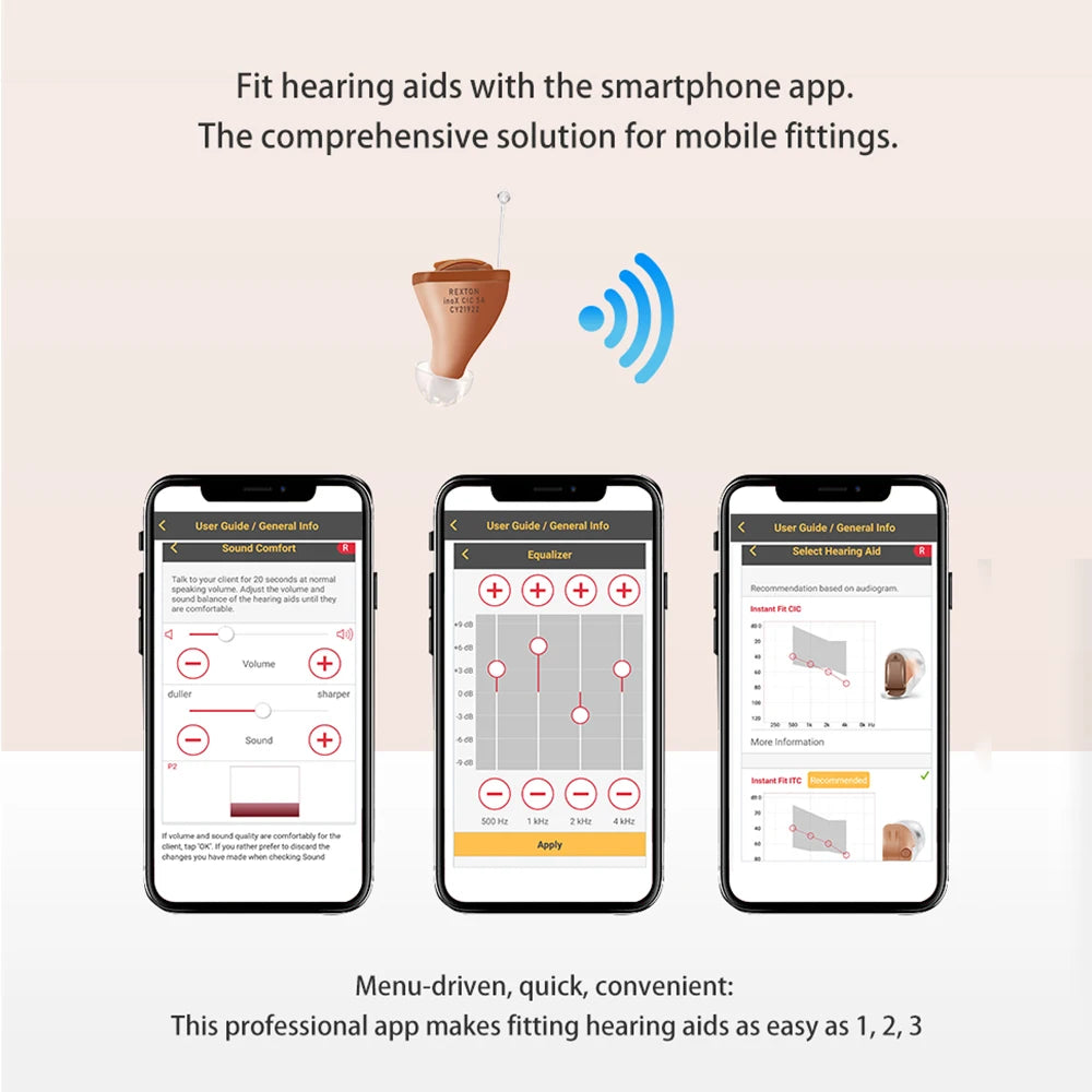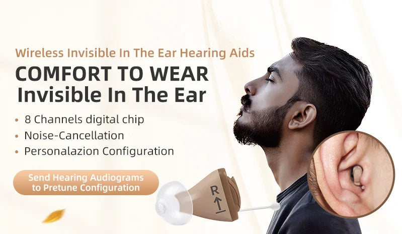 A comfortable and invisible left-ear hearing aid with digital clarity and app control, making it a practical solution for everyday conversations.