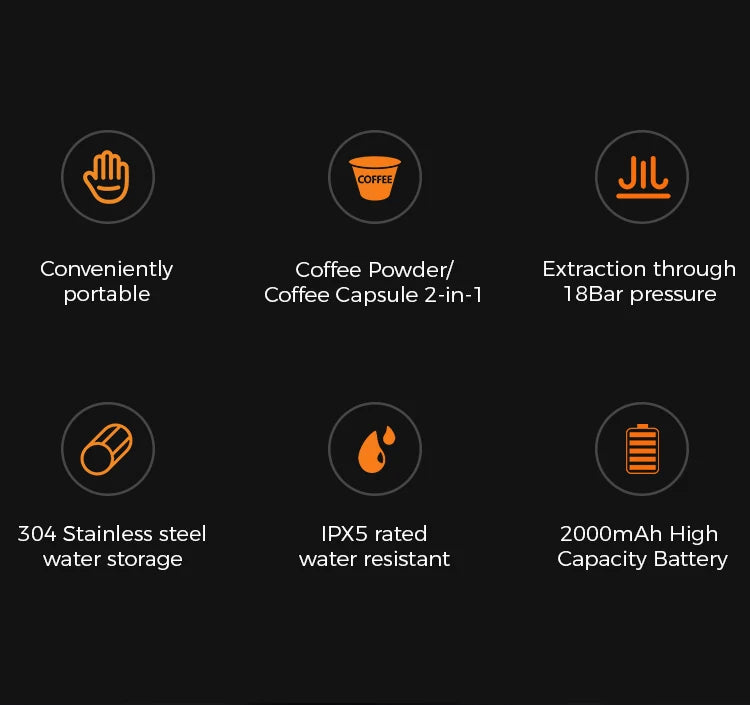 Your on-the-go barista solution. Brew rich espresso with either ground coffee or capsules, perfect for camping, road trips, or busy mornings at home.