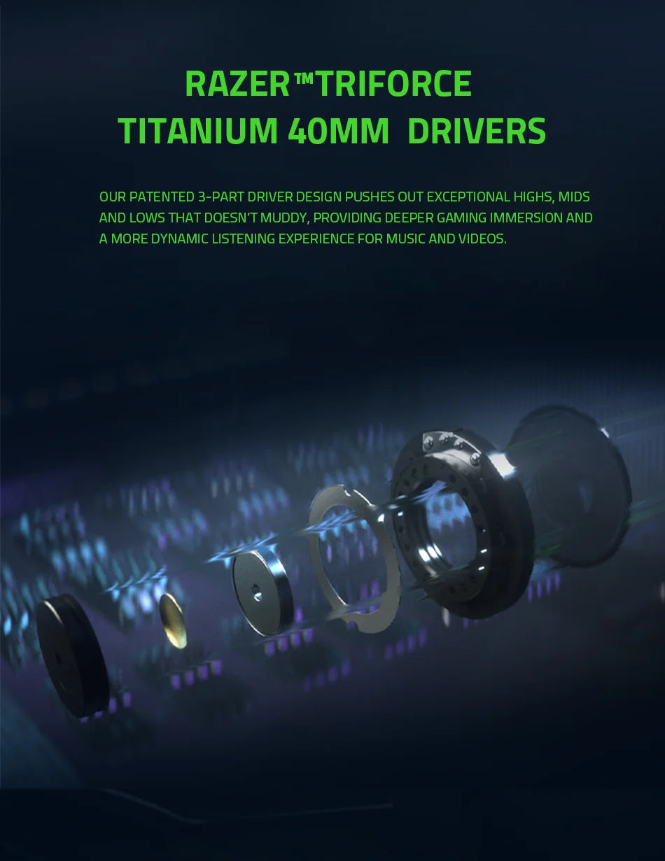 Razer™ TriForce 40mm drivers deliver crisp highs, mids, and lows