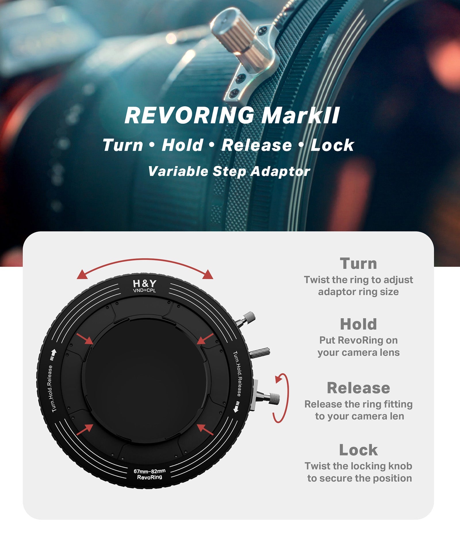 Fits multiple lenses without extra step-up rings