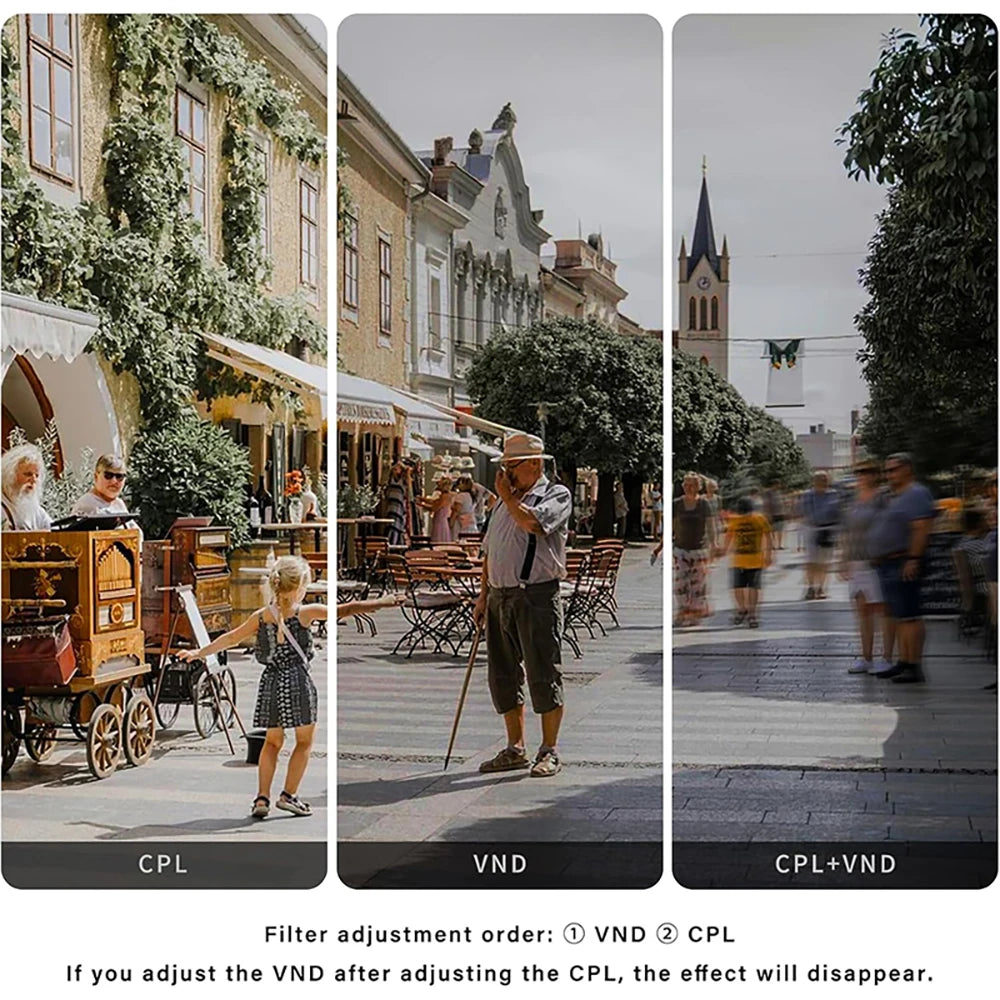 Achieve cinematic results effortlessly with this 3-in-1 VND + CPL filter. Perfect for lenses 67–82mm, it offers smooth light control, glare reduction, and enhanced colours for professional-level imagery.