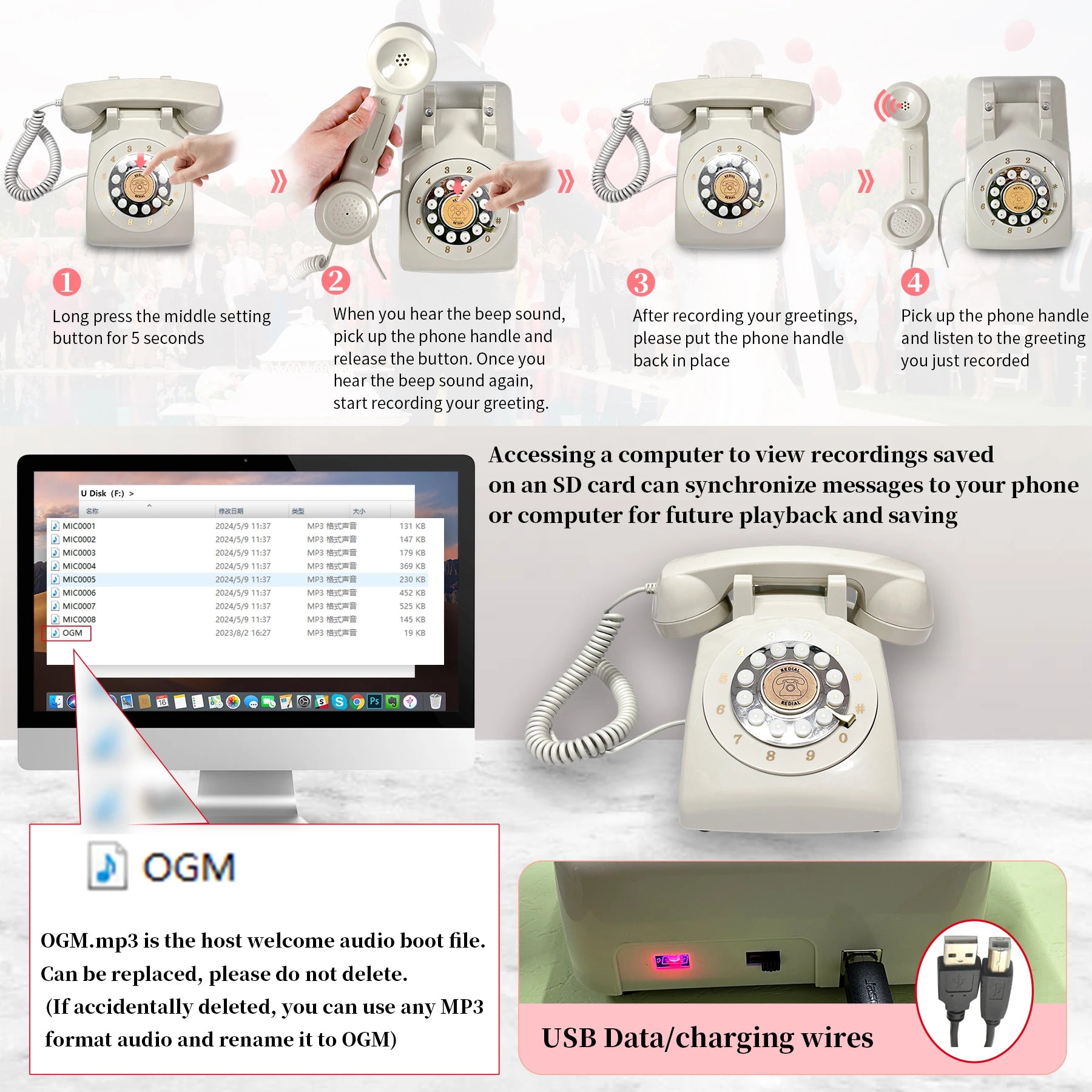 Add a romantic, nostalgic touch to your celebration while preserving voices that matter most. This vintage-style audio guestbook allows guests to leave personal voice messages by simply lifting the handset and speaking after the tone.
