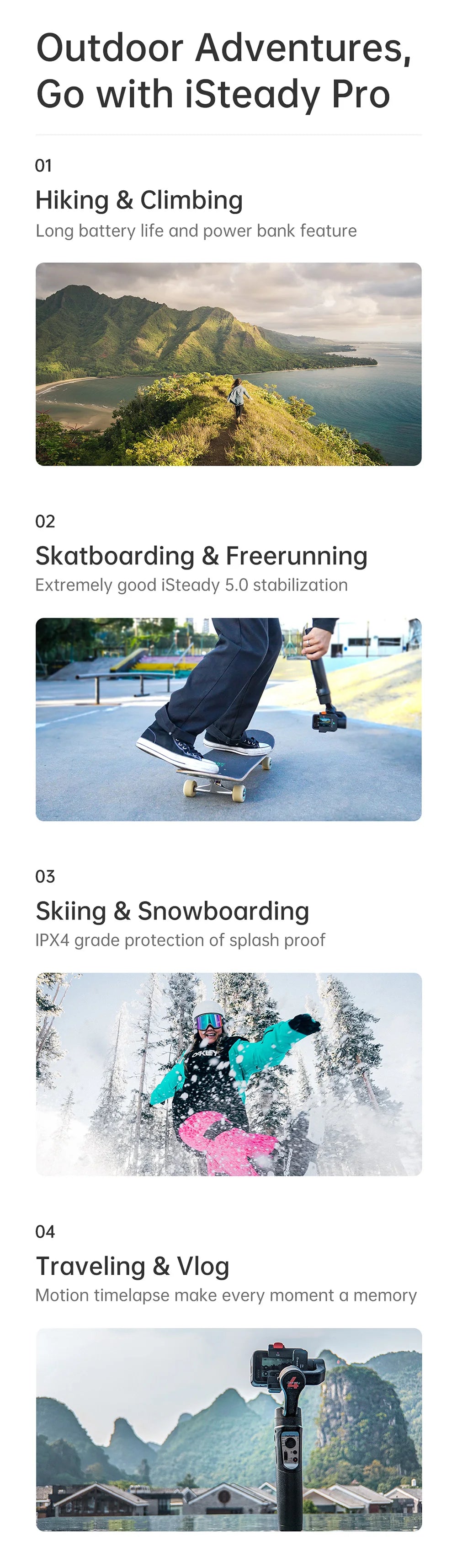 Long Battery Life: Extended runtime allows for uninterrupted shooting on long adventures.