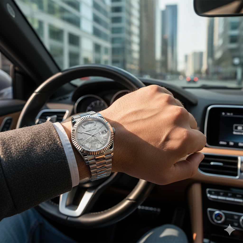 Classic silver white dial with Roman numeral display