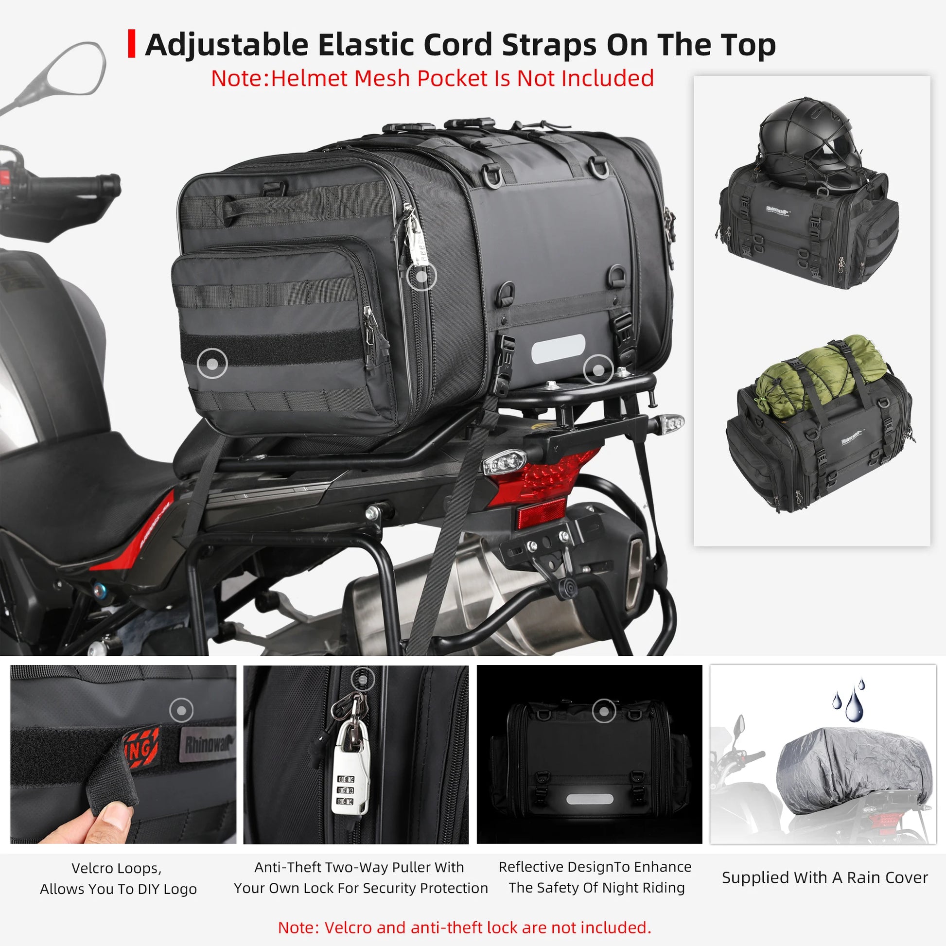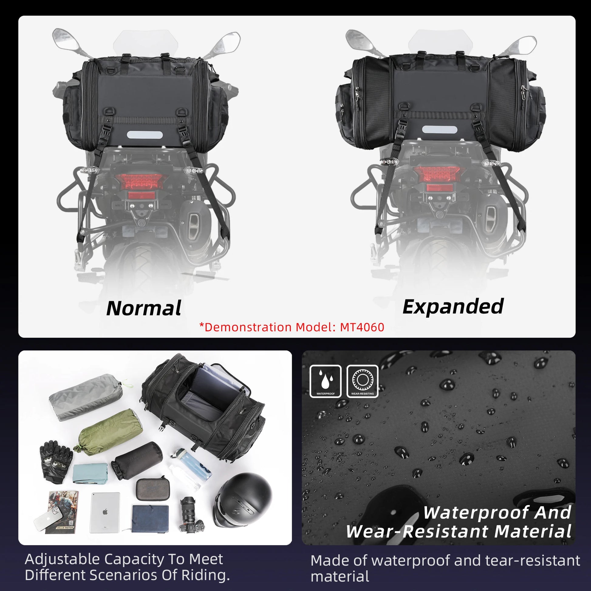 Waterproof Motorcycle Rear Seat Bag Expandable 19L to 45L
