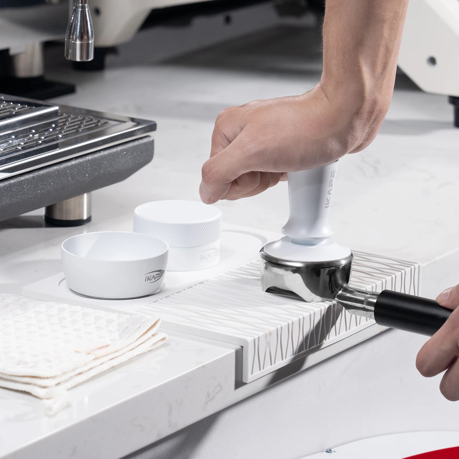 Craft the perfect espresso shot every time with this 53.3mm white coffee tamper kit. Designed for precision and ease of use, it ensures even extraction and a mess-free, organised coffee-making process.