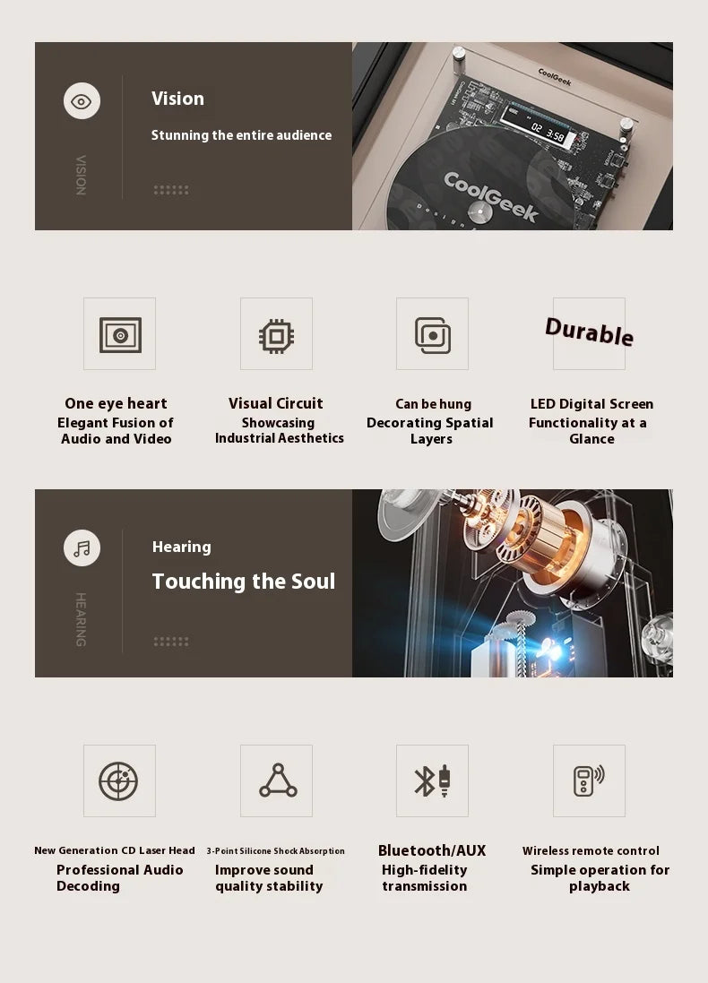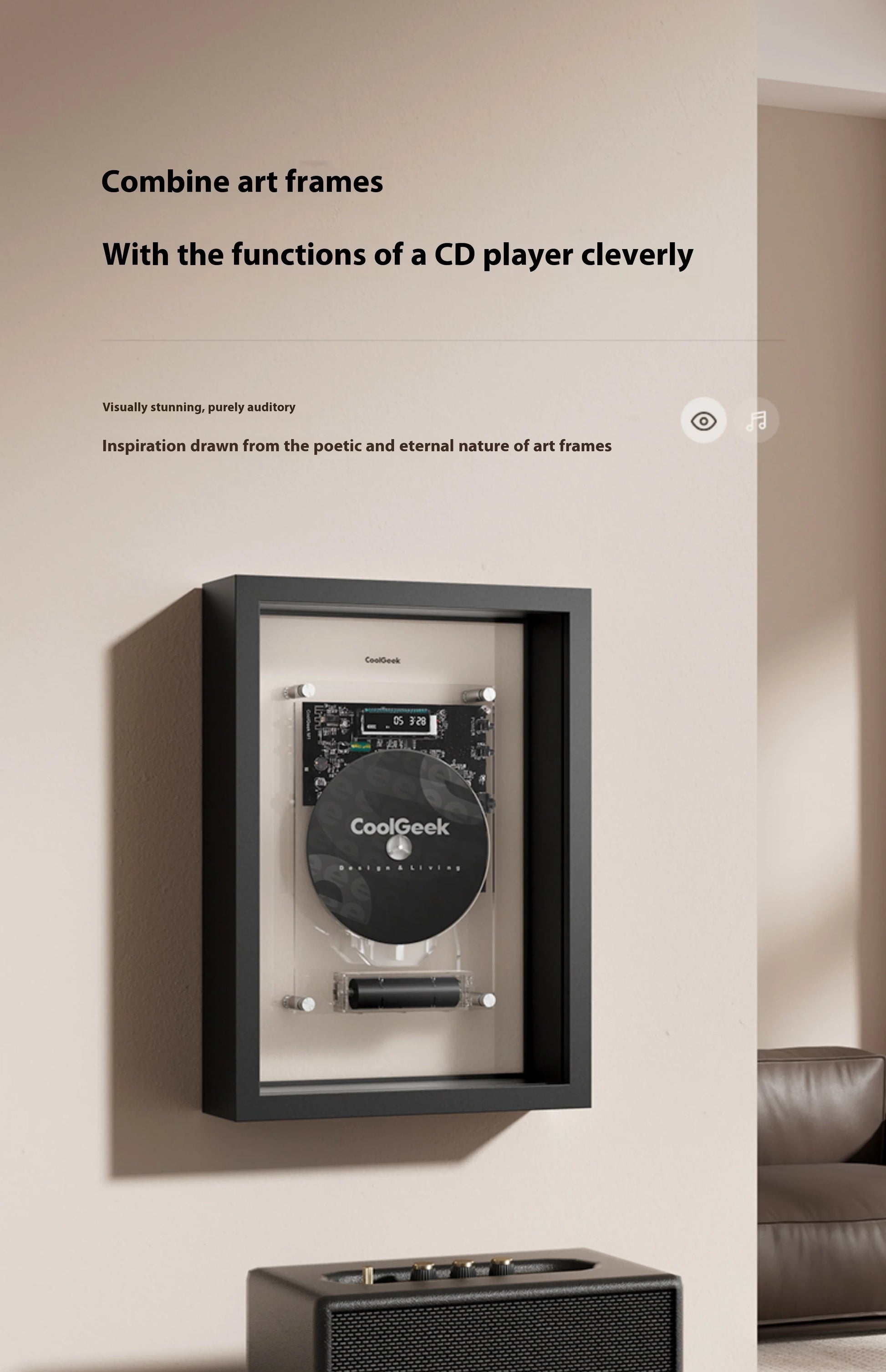 2-in-1 Music Frame Design: Functions as both a decorative wall photo frame and a fully featured CD player.