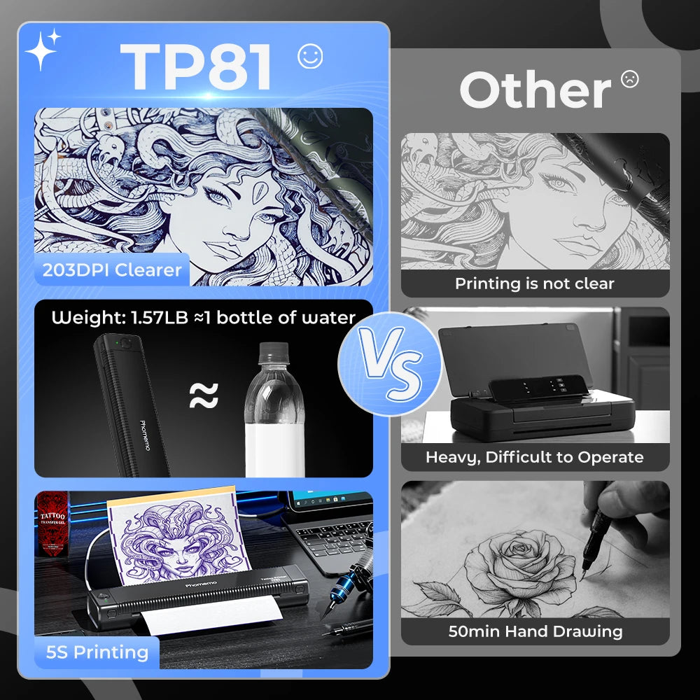 Bring your tattoo ideas to life faster with this portable wireless stencil printer. Designed for professional and at-home artists, it lets you print crisp, detailed stencils instantly — no ink, no mess, just smooth precision every time.