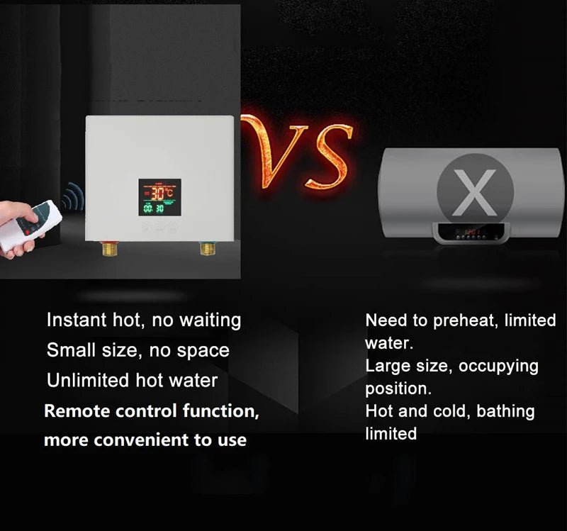 Get instant hot water with this elegant white tankless water heater. Perfect for bathrooms or kitchens, it heats water in seconds and offers precise temperature control for everyday comfort.
