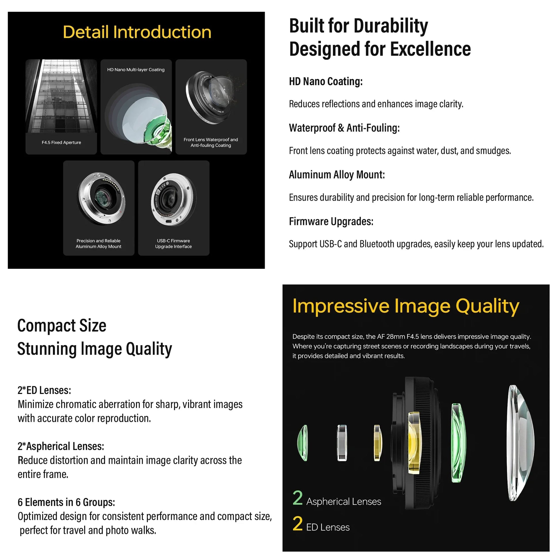 Wide Angle 28mm F4.5 Autofocus Camera Lens Sony FE
