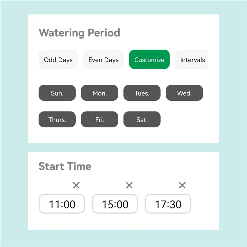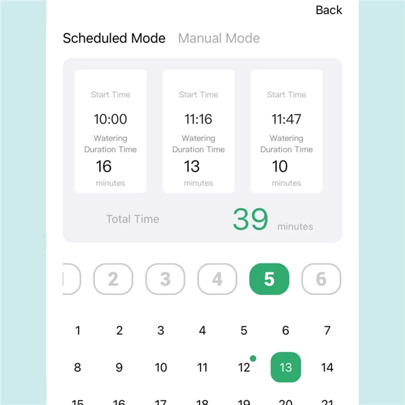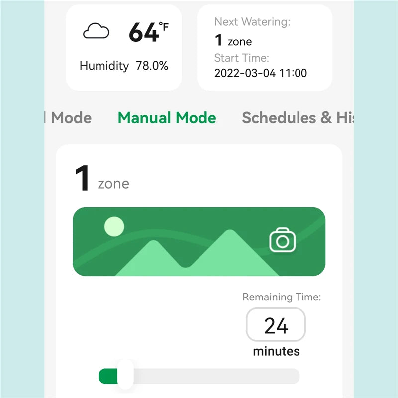 Manual mode for quick, extra watering on hot or dry days