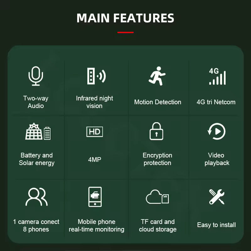 Designed for off-grid security and trail monitoring, this 4MP 4G camera provides reliable motion alerts, night vision, and long battery life for up to 5 months.