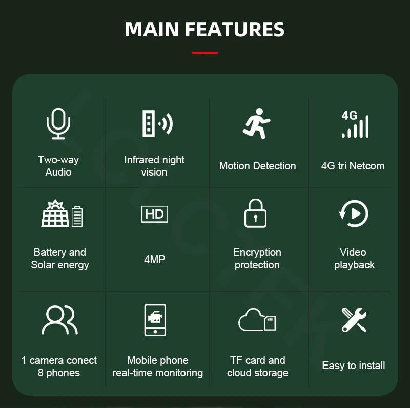 Capture every moment in the wild or protect your property with this wireless 4MP trail camera. Designed for both security and outdoor use, it offers reliable 4G connectivity, PIR motion detection, and clear day-and-night video.