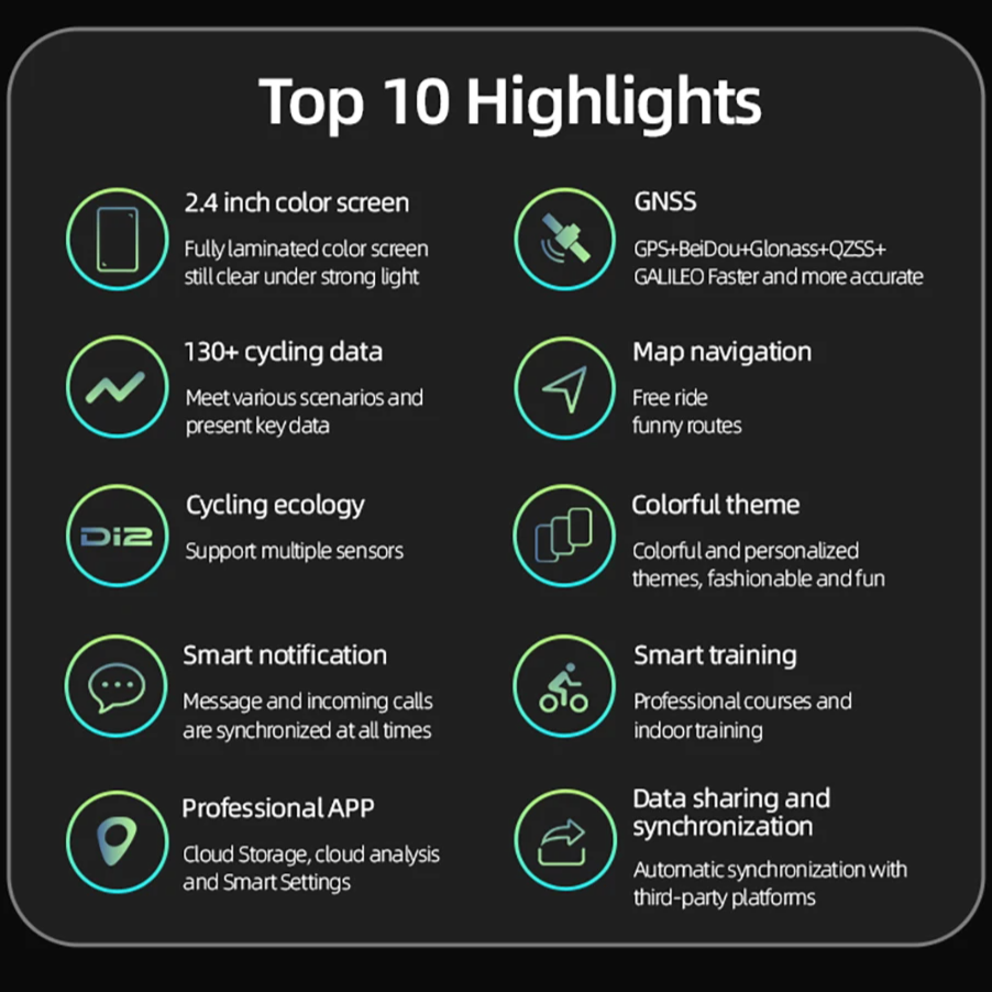 Comprehensive Sensor Connectivity: Compatible with cadence, speed, power meters, and Di2.