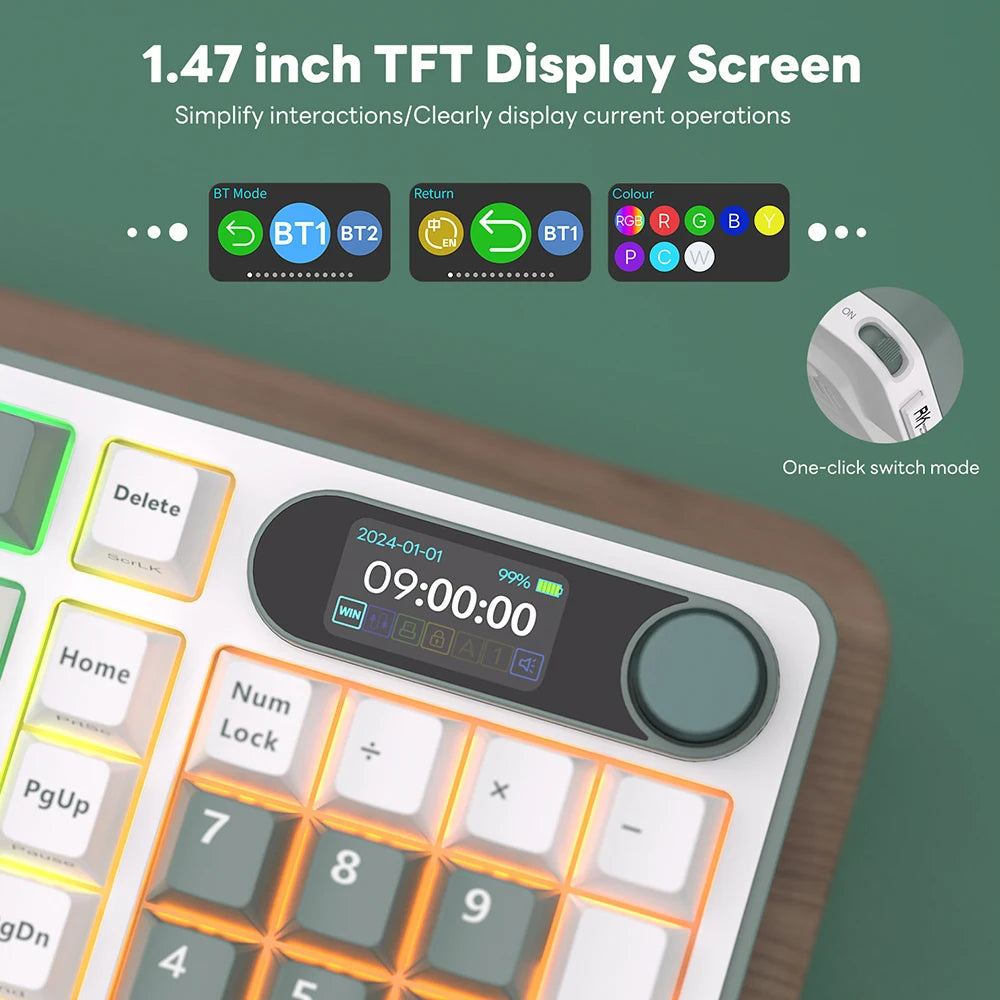 This wireless keyboard combines responsive Brown switches, compact design, and TFT display functionality, offering portable, high-performance gaming and typing on multiple devices.