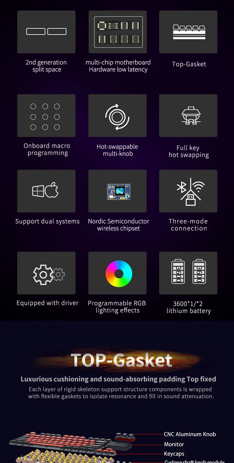 2-inch V3.0 LCD screen displays battery, connection, and keyboard mode, with hot-swap support.
