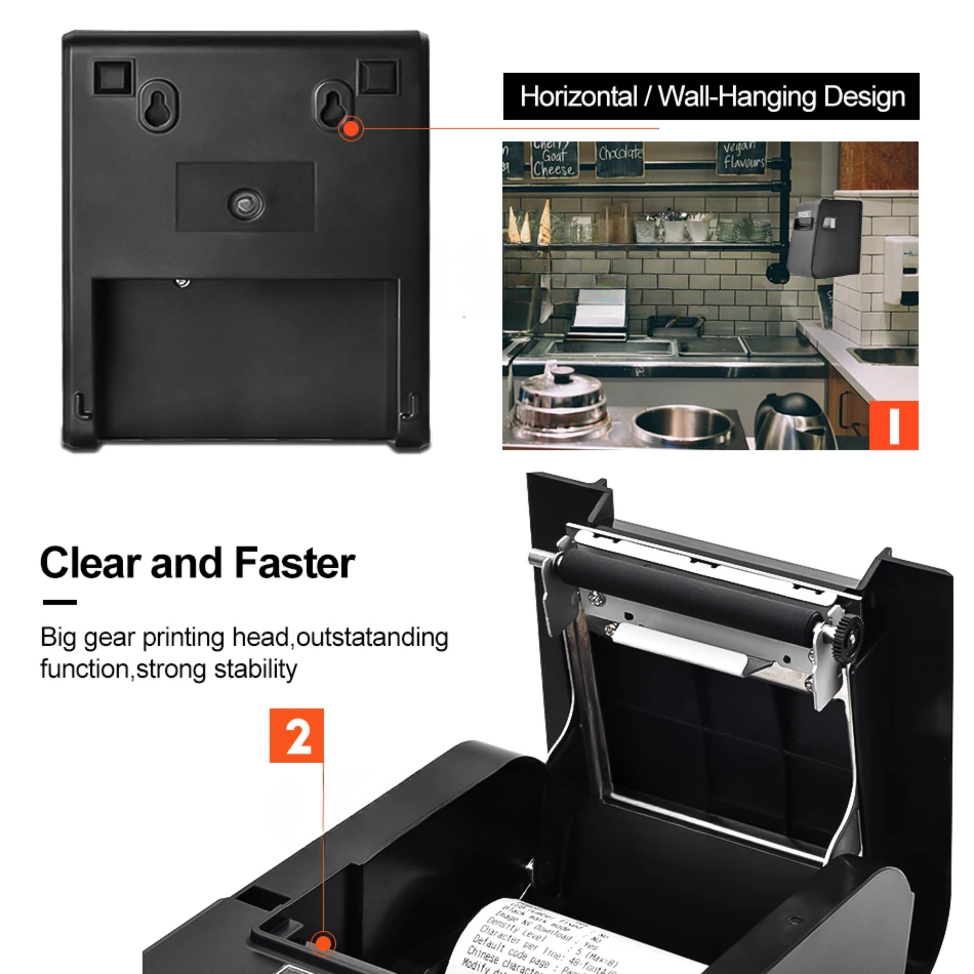 Take control of your POS system with a versatile 80mm thermal printer featuring USB and Bluetooth. Print receipts wirelessly or via cable, perfect for mobile or compact retail setups.