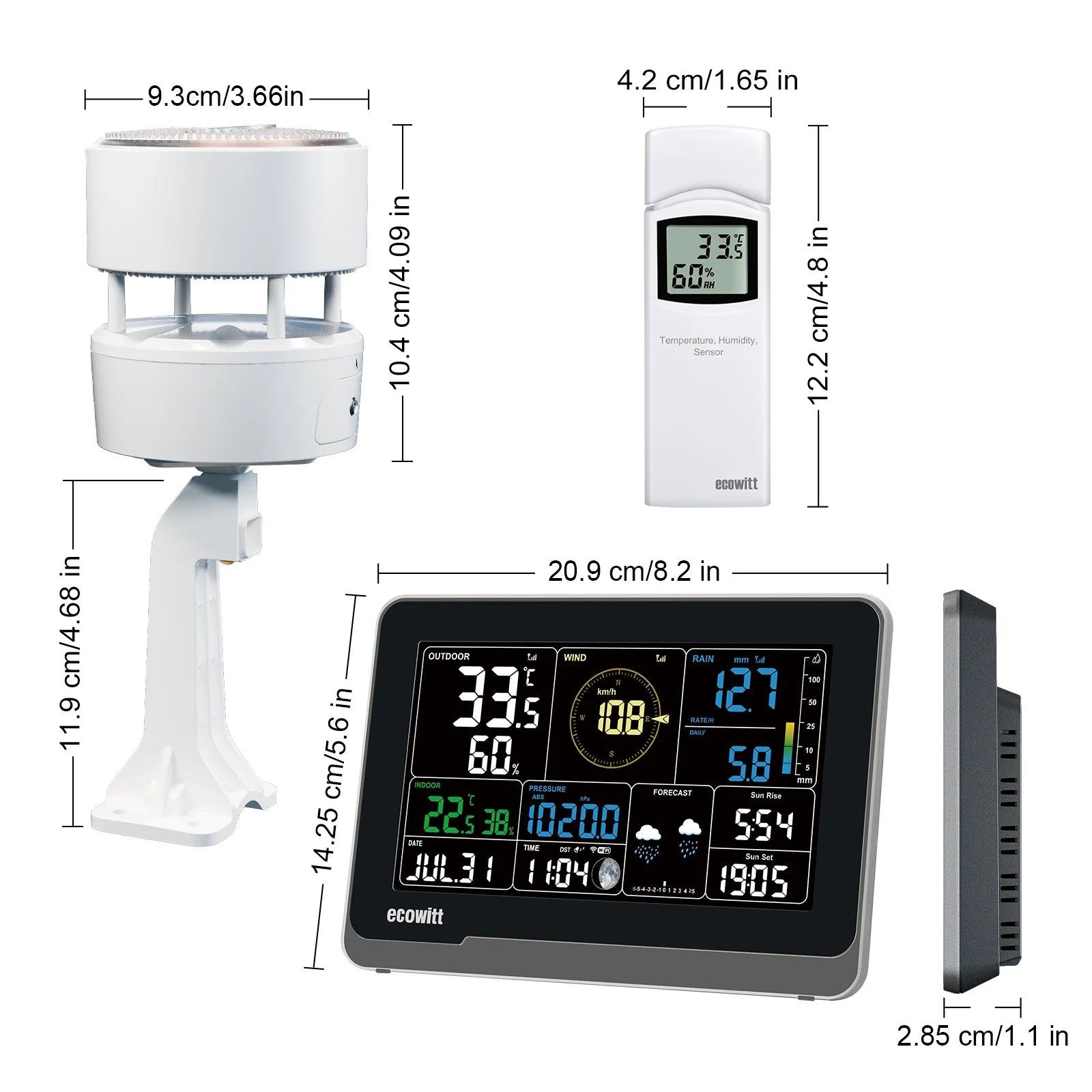 Comprehensive Weather Tracking: Monitors indoor and outdoor temperature, humidity, barometric pressure, wind speed, wind direction, and rainfall.