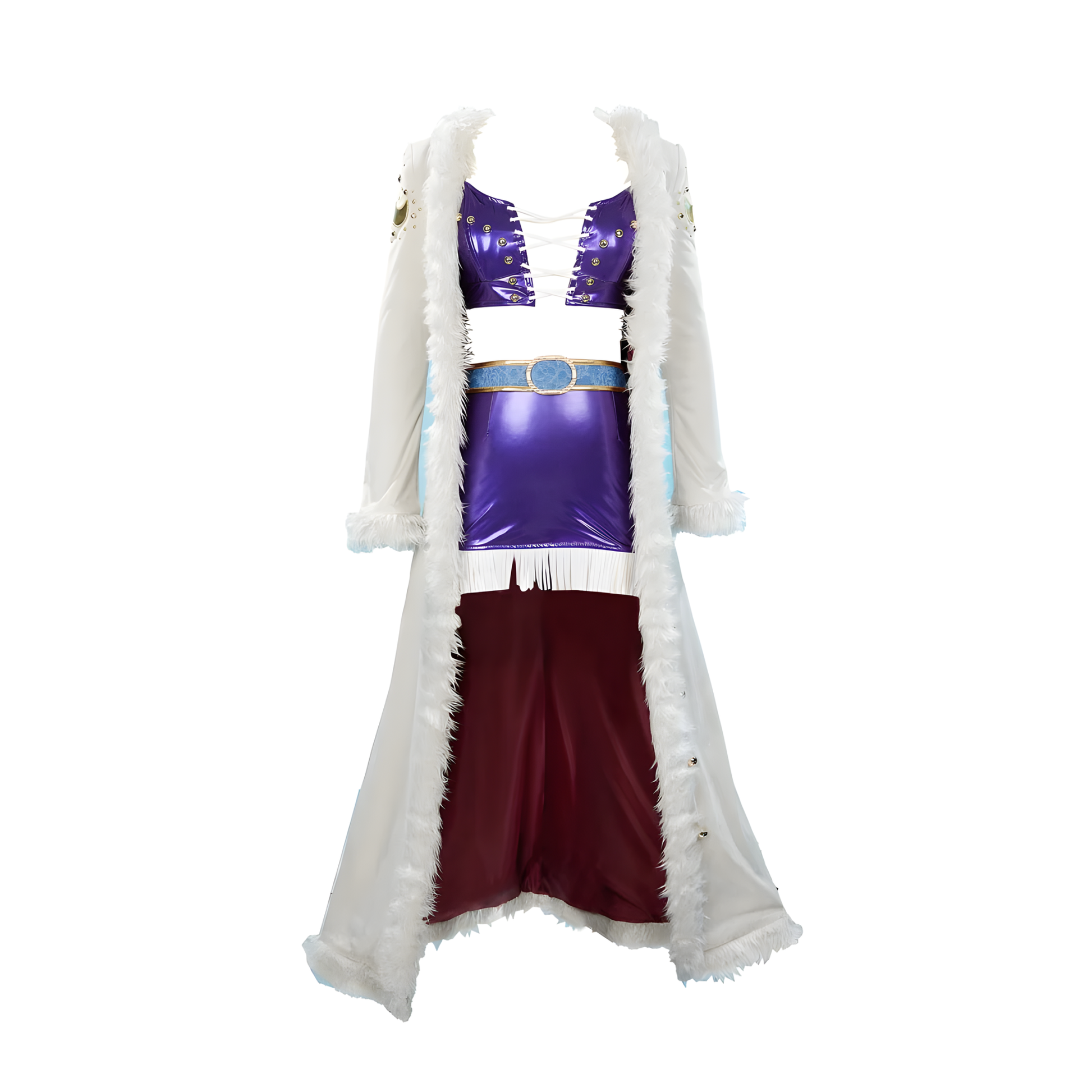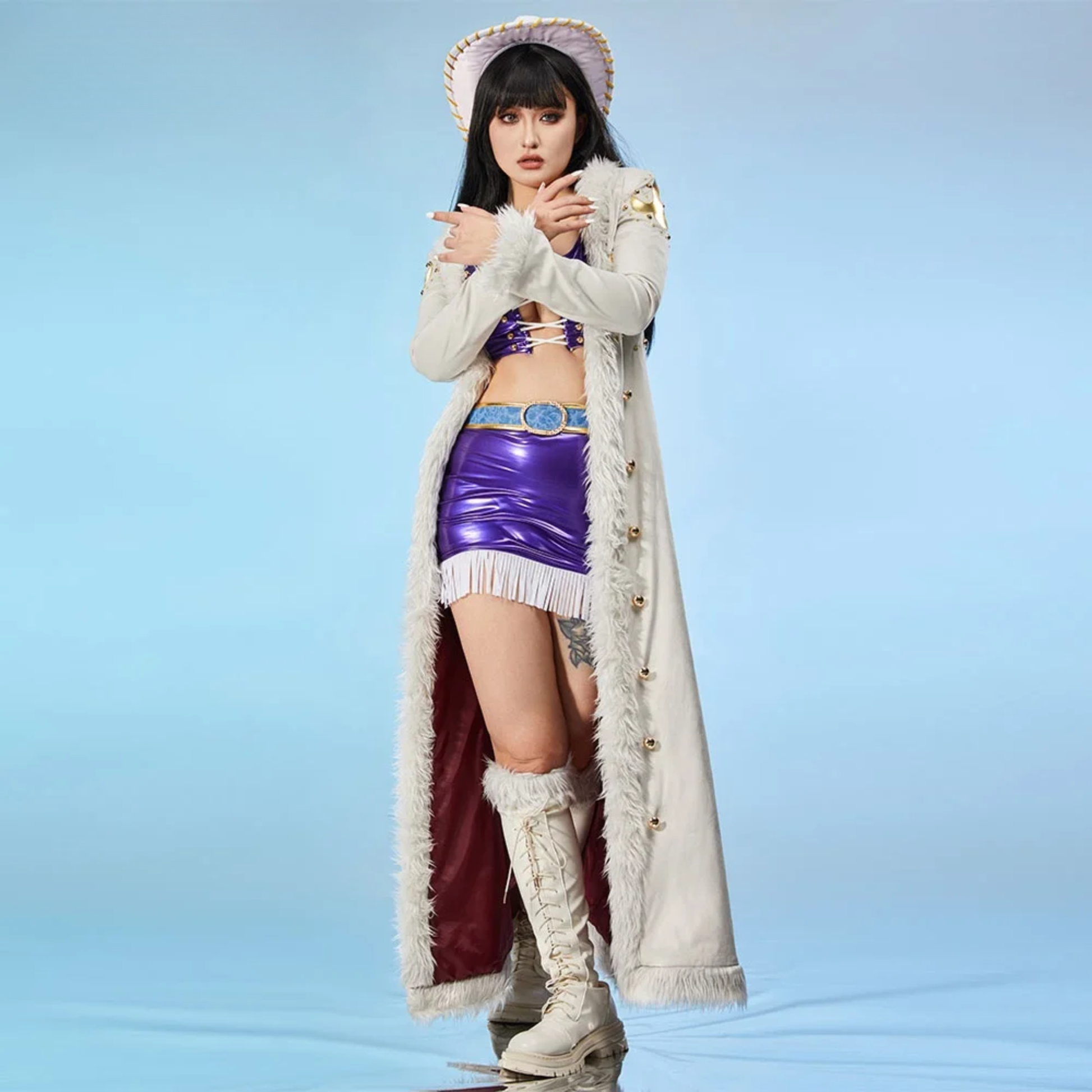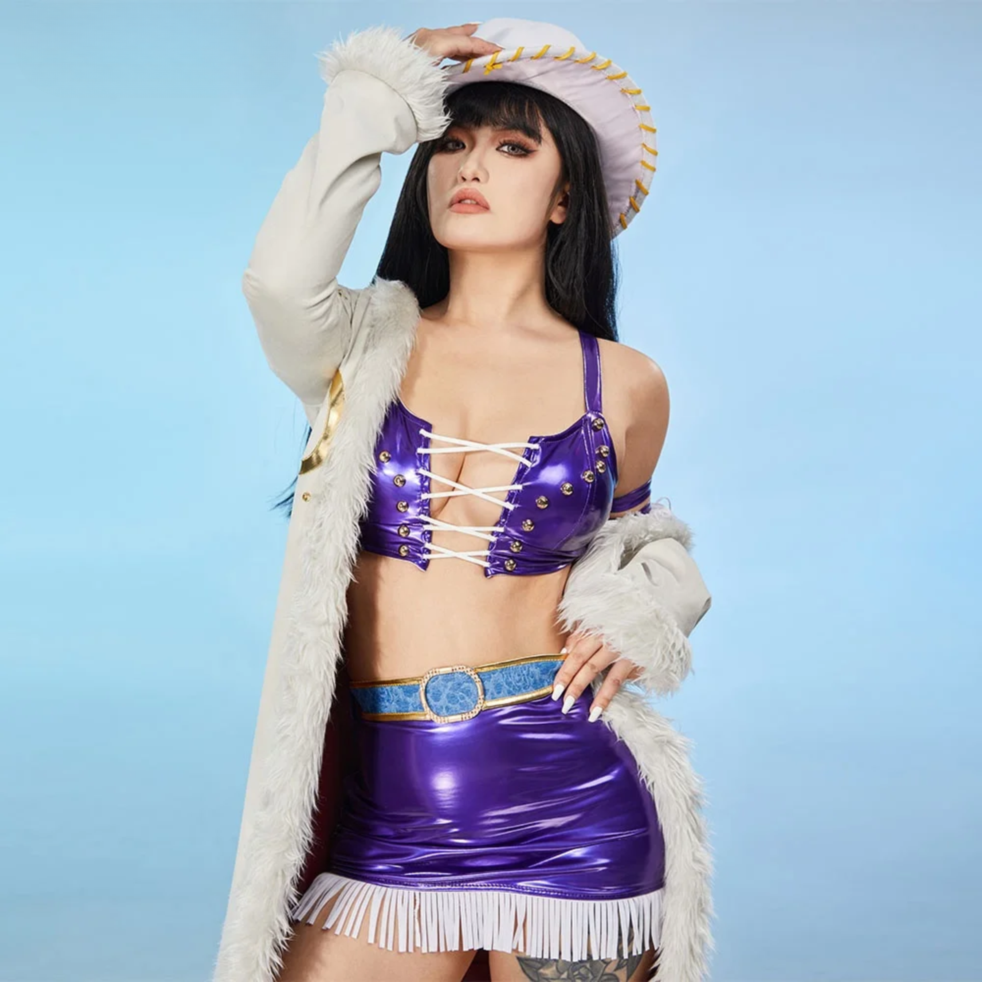 Complete Outfit Set: Includes coat, bra, skirt, belt, hat, and matching accessories for a full, ready-to-wear cosplay look.