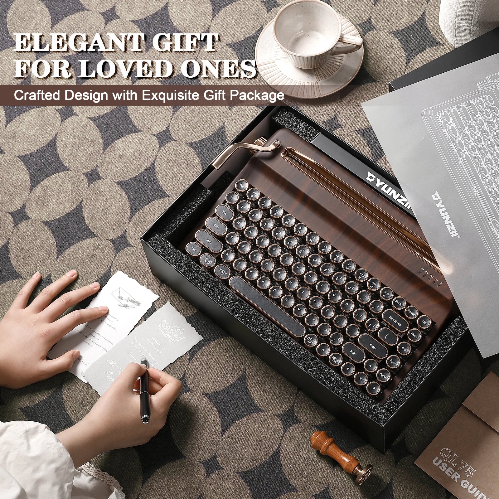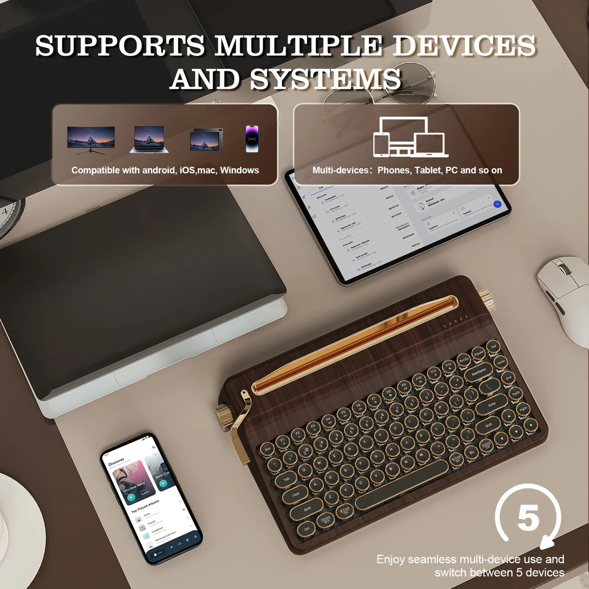 Combining style and smooth performance, this wood-grain linear keyboard is ideal for those seeking quiet precision and versatile wireless connectivity across multiple devices.